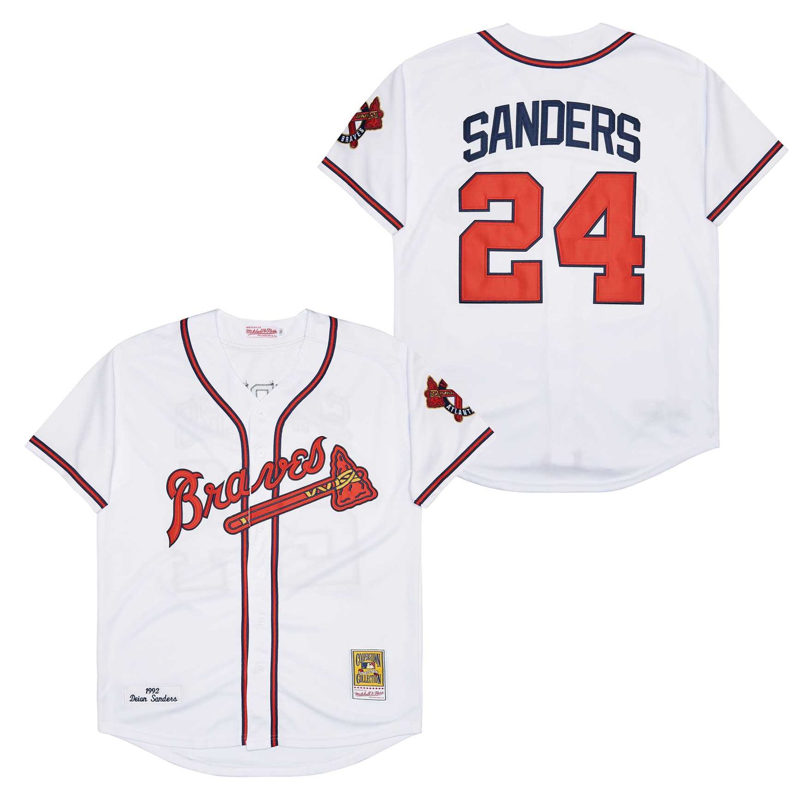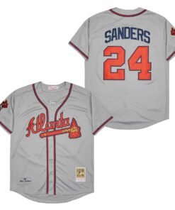 Men’s Atlanta Braves Deion Sanders Grey 1992 #24 Jersey
